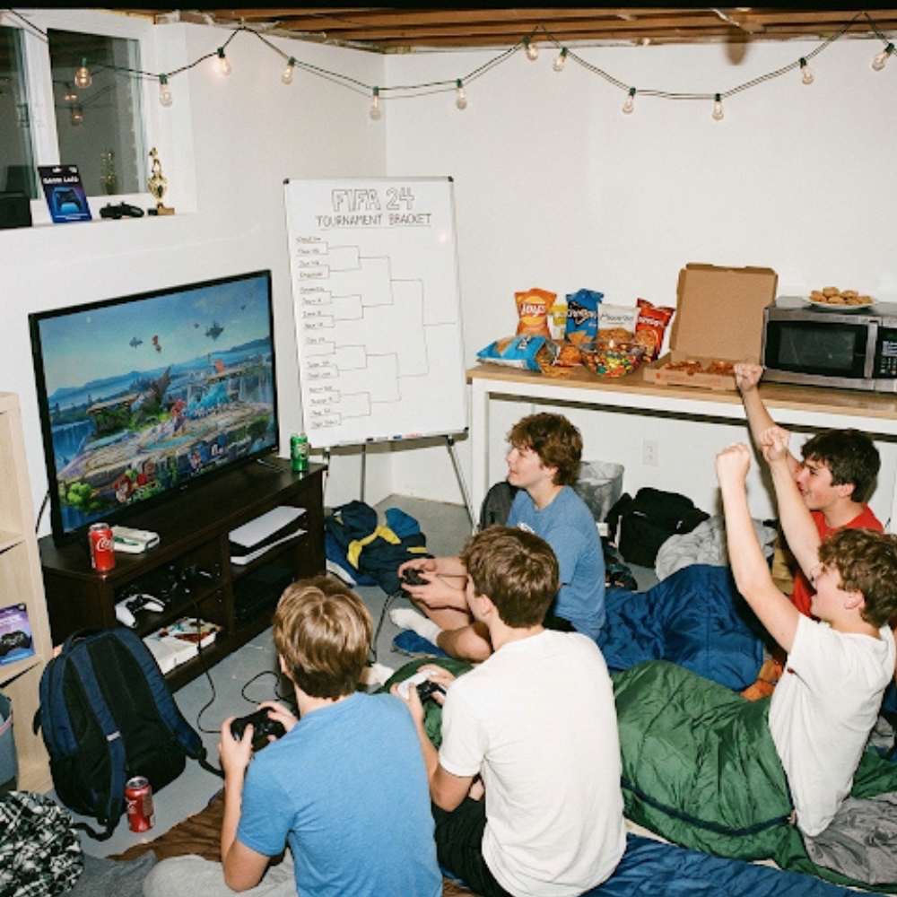 Host this sleepover in the basement, living room or wherever you can set up screens without disrupting the whole house overnight. Create actual brackets for games like FIFA, Madden, NBA 2K, Super Smash Bros or whatever’s popular right now. The prize for the winner can be something small like a gaming gift card.